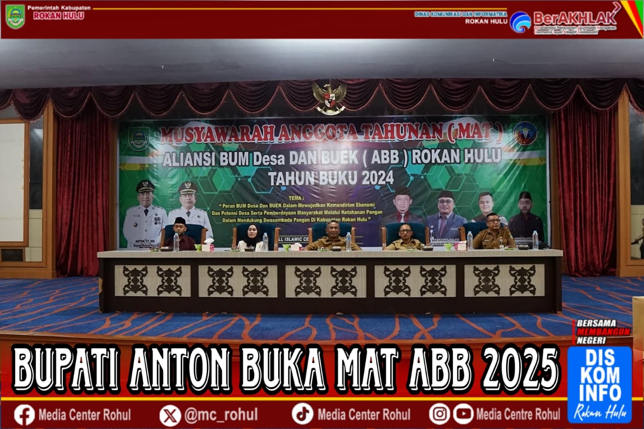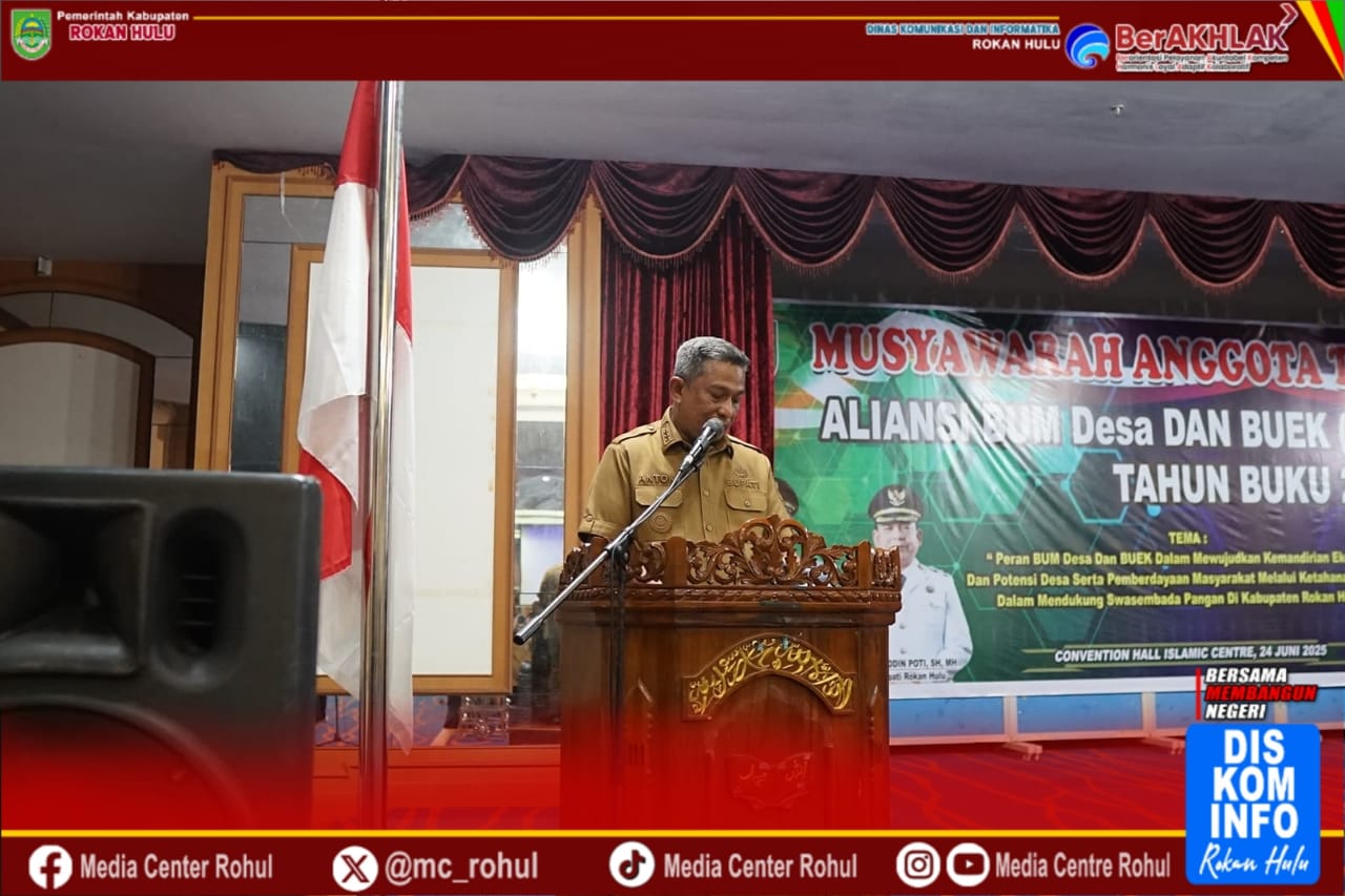 Rokan Hulu, intelmedia.co.id – Bupati Rokan Hulu, Anton, S.T., M.M., secara resmi membuka Musyawarah Anggota Tahunan (MAT) Aliansi BUMDesa dan BUEK (ABB) Kabupaten Rokan Hulu Tahun Buku 2024. Acara ini mengusung tema “Peran BUMDesa dan BUEK dalam Mewujudkan Kemandirian Ekonomi dan Potensi Desa serta Pemberdayaan Masyarakat melalui Ketahanan Pangan dalam Mendukung Swasembada Pangan di Kabupaten Rokan Hulu”, dan berlangsung di Convention Hall Islamic Center, Selasa (24/06/2025).