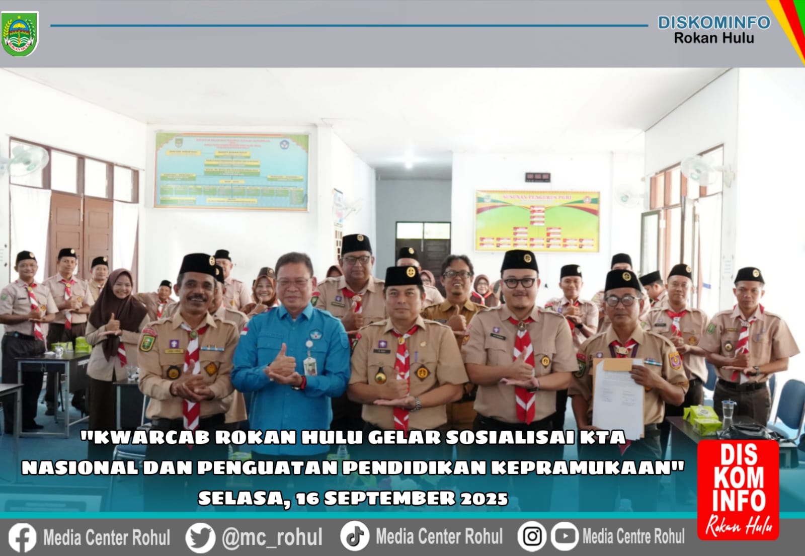 Rokan Hulu, intelmedia.co.id – Kwartir Cabang Gerakan Pramuka Rokan Hulu bekerja sama dengan Dinas Pendidikan, Pemuda dan Olahraga (Disdikpora) serta Kementerian Agama (Kemenag) Kabupaten Rokan Hulu menggelar Sosialisasi KTA Nasional dan Penguatan Pendidikan Kepramukaan. Acara ini bertujuan mengintegrasikan teknologi dan memperkuat peran Pramuka dalam membentuk karakter generasi muda.