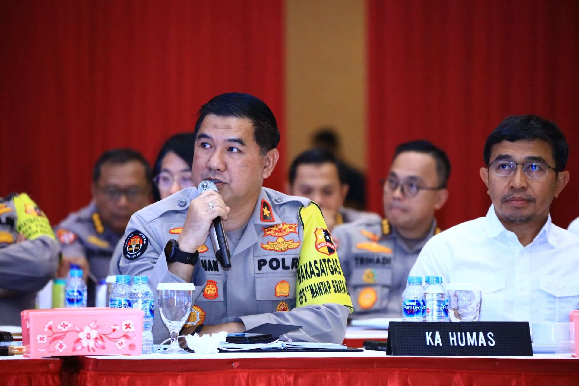 “Tentu hari ini kegiatannya memaparkan oleh masing-masing Kasatgas tentang kesiapan satgas masing-masing. Tadi sudah dimulai dari satgas preemtif, preventif, tindak, gakkum, capres/cawapres dan semuanya. Setelah break ada satgas humas dan banops,” jelasnya.